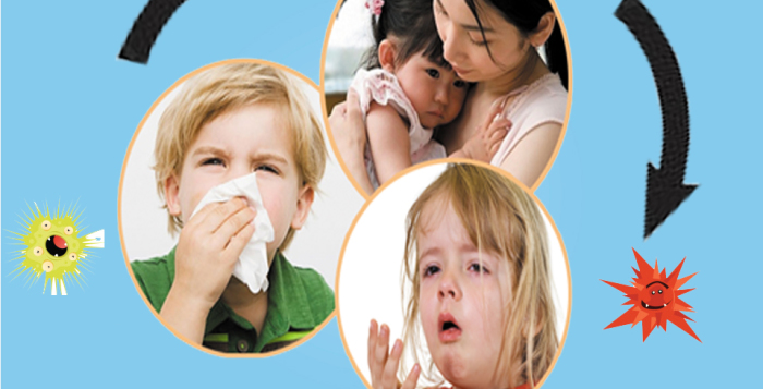 Mặt khác, cần tránh để trẻ tiếp xúc gần với người lớn hay trẻ khác đang cảm ho – dù chỉ là cảm ho thông thường. Virus gây bệnh viêm phế quản – phổi là loại virus có khả năng lây lan cao và gây bệnh cho mọi người. Tuy nhiên, nếu trẻ lớn và người lớn nhiễm virus này chỉ có biểu hiện của cảm ho thông thường, nhưng sẽ là nguồn lây bệnh quan trọng cho trẻ nhỏ. Trong khi trẻ dưới 2 tuổi nhiễm virus này sẽ bị viêm tiểu phế quản, viêm phế quản hoặc viêm phổi. Ở trẻ càng nhỏ thì bệnh càng nặng.